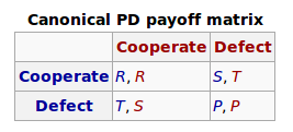 And to be a prisoner's dilemma game in the strong sense, the following condition must hold for the payoffs:
