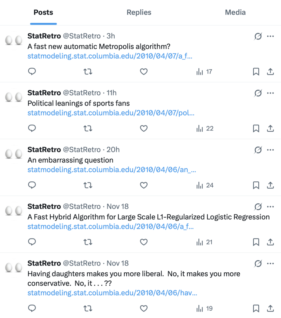 StatRetro: The twitter feed that spits out our old blog posts, one at a time, every 8 hours