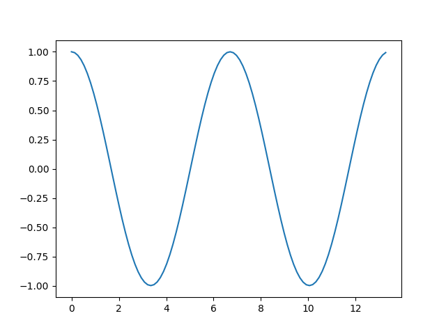 import numpy as npN = 100y = np.zeros(N)yp = np.zeros(N) # y'y[0] = 1yp[0] = 0T = 4*ellipk(np.sin(y[0]/2)**2)h = T/Nf = lambda x: -np.sin(x)fp = lambda x: -np.cos(x) # f'fpp = lambda x: np.sin(x) # f''for n in range(0, N-1): y[n+1] = y[n] + h*yp[n] + 0.5*h**2*f(y[n]) + \ (h**3/6)*fp(y[n])*yp[n] + \ (h**4/24)*(fpp(yp[n])**2 + fp(y[n])*f(y[n])) yp[n+1] = yp[n] + h*f(y[n]) + 0.5*h**2*fp(y[n])*yp[n] + \ (h**3/6)*(fpp(yp[n])**2 + fp(y[n])*f(y[n]))