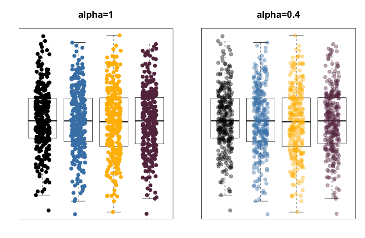 Often I like to reduce the alpha value (level of transparency) of colours to identify patterns of over-plotting when displaying lots of data points with R. So, here is a tiny function that allows me to add an alpha value to a given vector of colours, e.g. a RColorBrewer palette, using col2rgb and rgb, which has an argument for alpha, in combination with the wonderful apply and sapply functions. The example below illustrates how this function can be used with colours provided in different formats, thanks to the col2rgb function. Read more »To leave a comment for the author, please follow the link and comment on his blog: mages' blog.