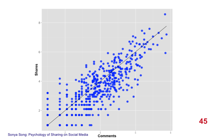By contrast, sad (death, loss) and contemptible (various suspects, sport scandal) stories were commented more than shared. Looking at Facebook, we recognize it as a venue connecting friends and family members. This characteristic may contribute to the divide between shares and comments, because commenting would allow users to keep their involvement within a semi-anonymous space and away from their friends and families. There may be other reasons explaining why some stories are more sharable than others on Facebook. Facebook is famous for a positive emotional climate (Pew Research, 2012) and harmonious social relations—guess why no dislike button has been ever introduced to Facebook. There are a variety of motivations we can suspect why we prefer to maintain good social relations. Some scholars believe good social relationships indicate interpersonal attraction and trust, help receive social support, and assist in transmitting information and resources crucial for professional performance (Podolny and Baron, 1997). Others name reciprocity, postulating that people give while expecting returned favors at a later point (Putnam, 1993). As diverse as these motivations are, people generally aim to maintain good social relations. Hence, such behavior should also be observed on Facebook, a hub of social connections, and its users should try to please others and avoid offending them. That means, if a post warns of severe weather, people are more likely to share it among social connections (information exchange). On the other hand, if a political or religious story will certainly upset some users’ parents, friends, or bosses, they will feel reluctant to throw it in their faces by sharing it. Or, if it’s aligned with the belief of a social circle (sports triumphs, gay marriage, sense of justice), sharing is preferred. Nonetheless, when a story reads controversial and emotional, people develop a compulsion to voice their opinions. In these cases, we’ll notice a lot of comments generated under a post though it may not result in many shares.