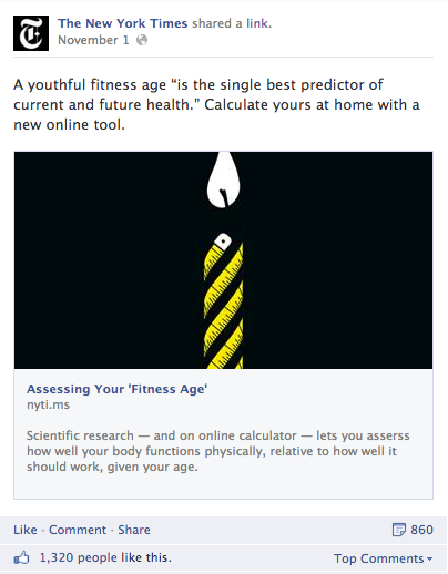 Another example is the Facebook Page of the New York Times, as shown in the following screenshots. Its posts that are hip and smart (science, health, cute tips) are highly shared.