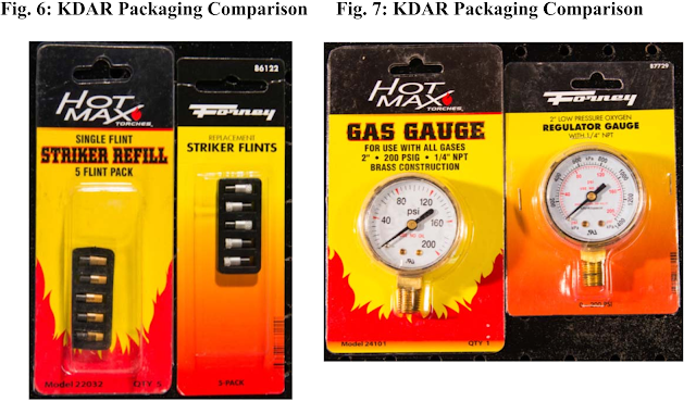 Allegedly infringing packages side by side with Forney
