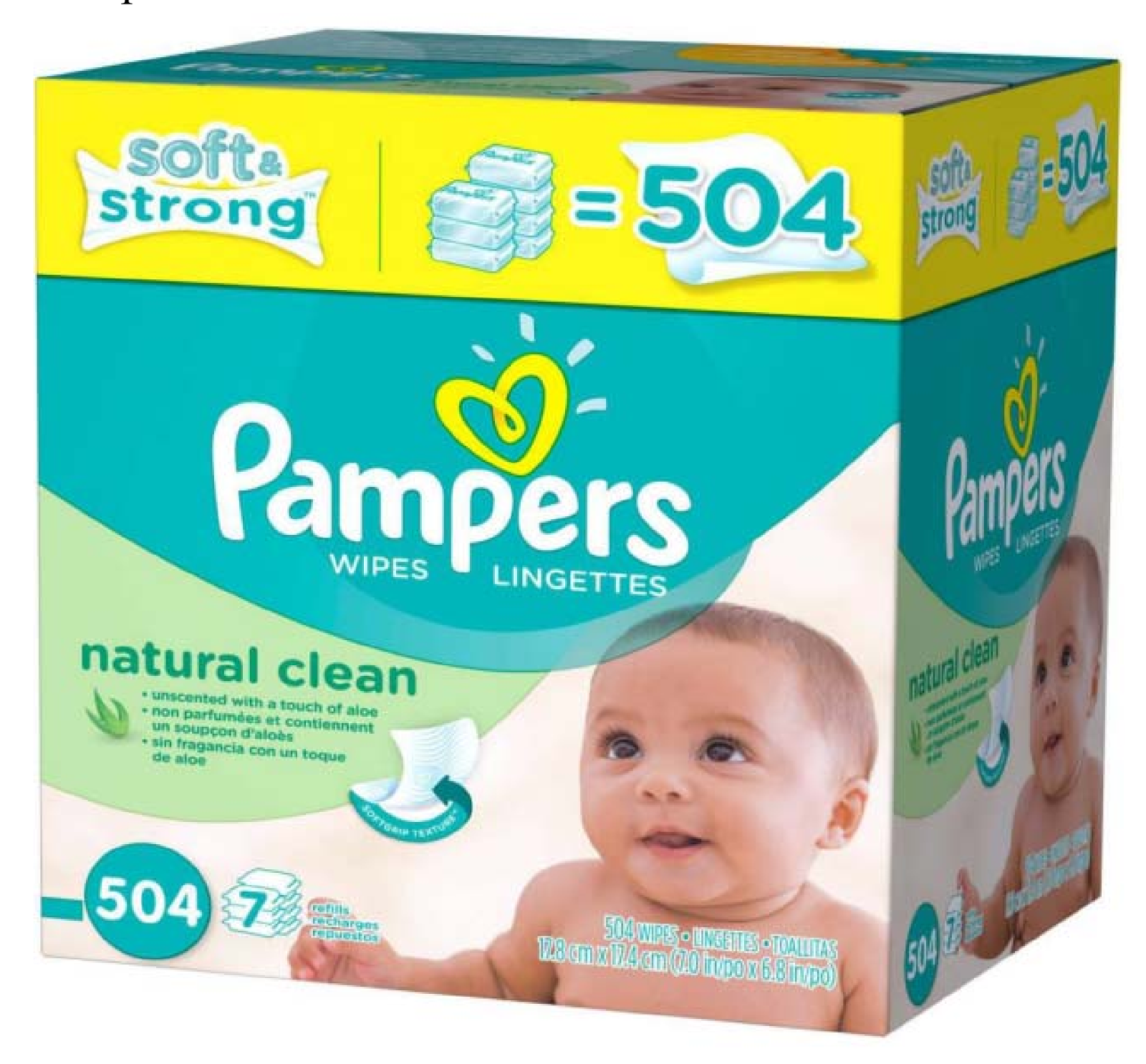 Brenner sued on behalf of a putative nationwide class and a California subclass of those who purchased Pampers “Natural Clean” Baby Wipes. The individual packaging is green and includes stylized depictions of flowering plants, animals, and leaves:
