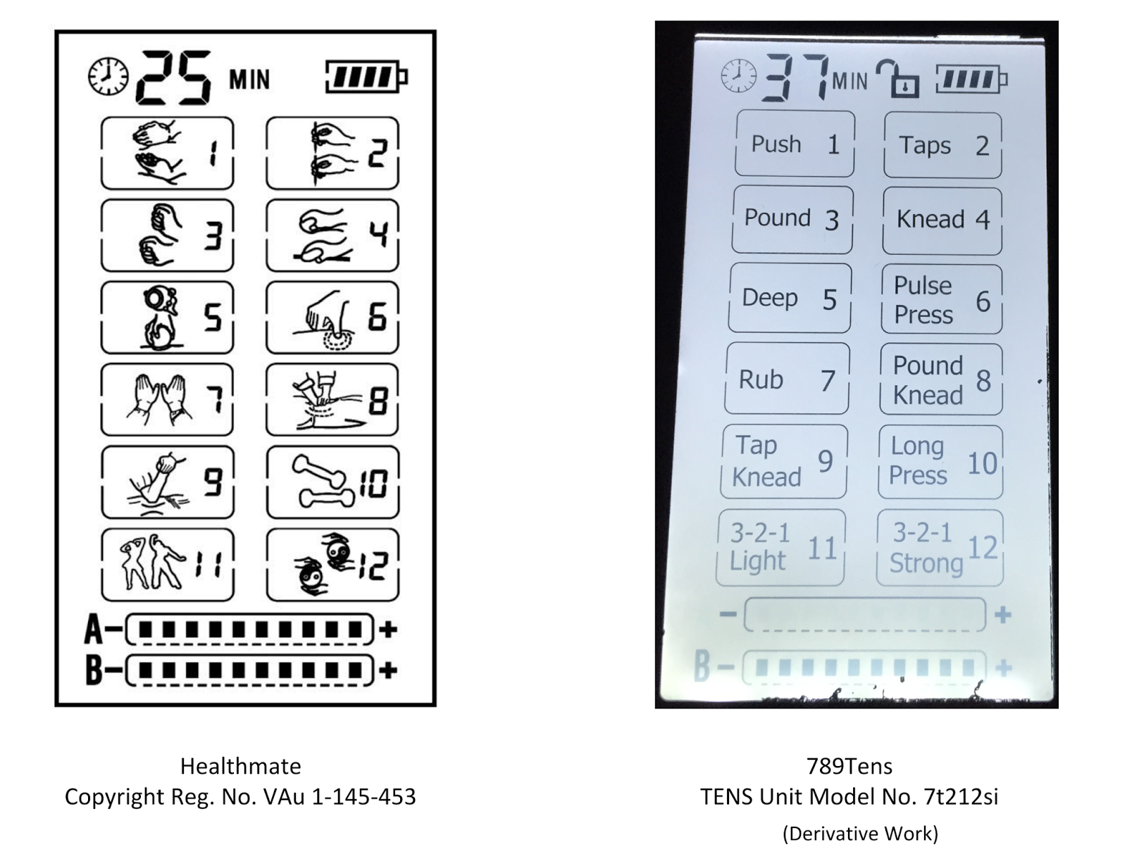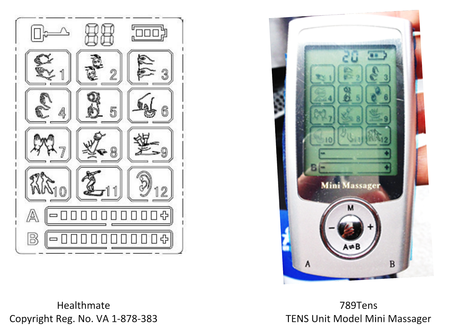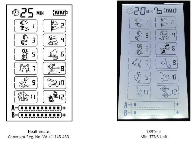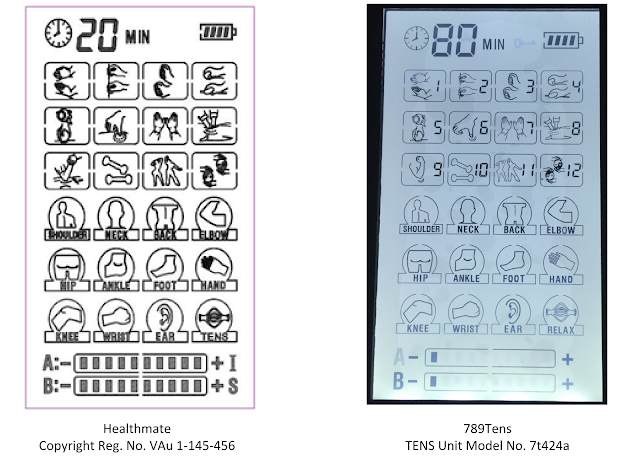 The parties (including defendant Rampant Lion) compete to sell TENS units, which administer electrical current to portions of the body in order to relieve pain. Healthmate registered three copyrights for graphical displays on TENS units. The displays have a series of picture-based icons that symbolize the TENS unit’s various functions and a battery-shaped icon with hashmarks meant to symbolize the amount of energy remaining in the TENS unit. Some of the displays also include icons that represent parts of the body, a clock or timer, or an “intensity” meter (a bar with hashmarks intended to indicate the current’s intensity). Healthmate alleged that defendants infringed by using substantially similar displays on their own TENS units.
