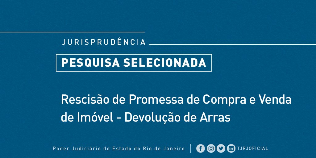 Saiu a atualização da #PesquisaSelecionada sobre o tema Rescisão de Promessa de Compra e Venda de Imóvel- Devolução de Arras. Saiba mais clicando no link: http://bit.ly/2q5iENW pic.twitter.com/oC1xFTxKCw