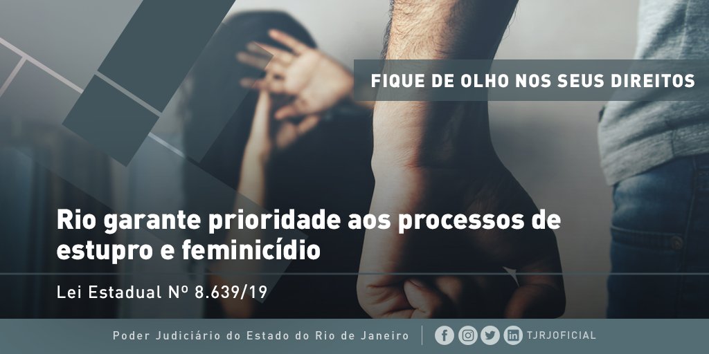 Trâmites procedimentais das ações judiciais cíveis, criminais e administrativas de crimes de estupro e feminicídio, terão prioridade no Estado do Rio de Janeiro. pic.twitter.com/OirYOr40vt