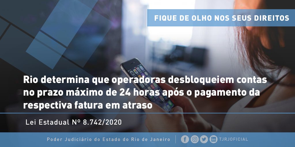 As operadoras de Serviço de Comunicação Multimídia e de conexões de dados do Serviço Móvel Pessoal ficam obrigadas a procederem o desbloqueio de contas no prazo máximo de 24 horas após o pagamento da respectiva fatura em atraso, inclusive nas hipóteses de celebração de acordo. pic.twitter.com/IBDKZZ0etN