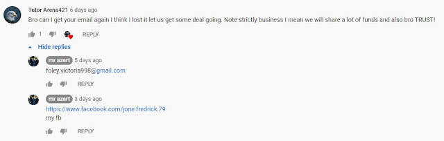 After listening to so much bad gangster/scammer rap music, it was nice to hear some Algerian rap while I did my investigation. Mr Azert confirms this is him by replying to "Tutor Arena421" giving him his email address (foley.victoria998@gmail.com) and Facebook address ( jone.fredrick.79).