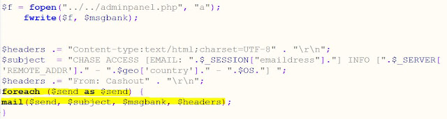 In this case, the reason Mr Azert is giving away these phishing kits is that he has backdoored all of the kits. We'll look at the Chase one first. There are five separate PHP files that send the various stolen information back to the person using the kit.